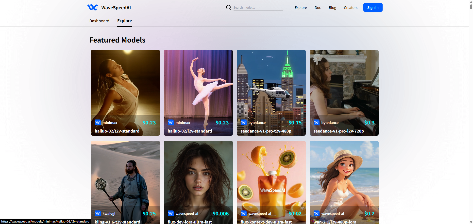 Wavespeed AI也是一个主打“模型加速”的平台,这点和fal很像,这里就不多赘述了。
