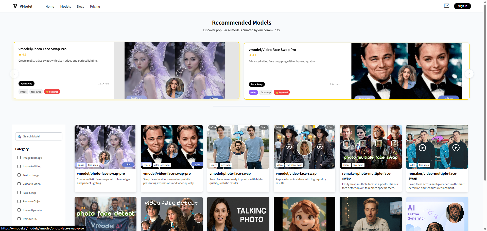 vmodel是我近期正在使用的一个AI API平台。这个平台提供的模型都是从功能上封装好的,比如AI数字人,AI口播,换脸,写真这些模型,我可以直接拿来使用,不用自己再去写复杂的prompt了,方便我的产品快速上线,然后验证结果。如果向传统的api那样,我需要通过prompt不断调整我的输出结果,但是最后验证阶段可能不通过,白白浪费很多时间。