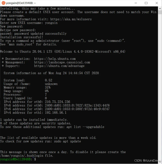 提示输入用户名和密码。然后进入命令行模式,就可以开始下一步骤了。