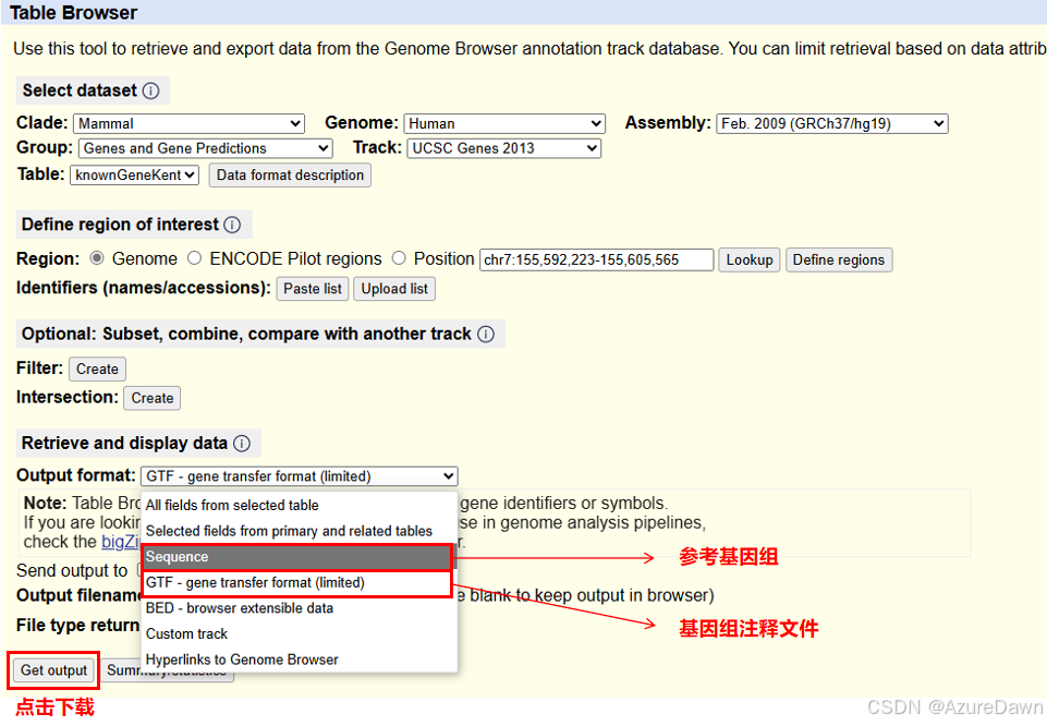 下载网站:http://genome.ucsc.edu/cgi-bin/hgTables