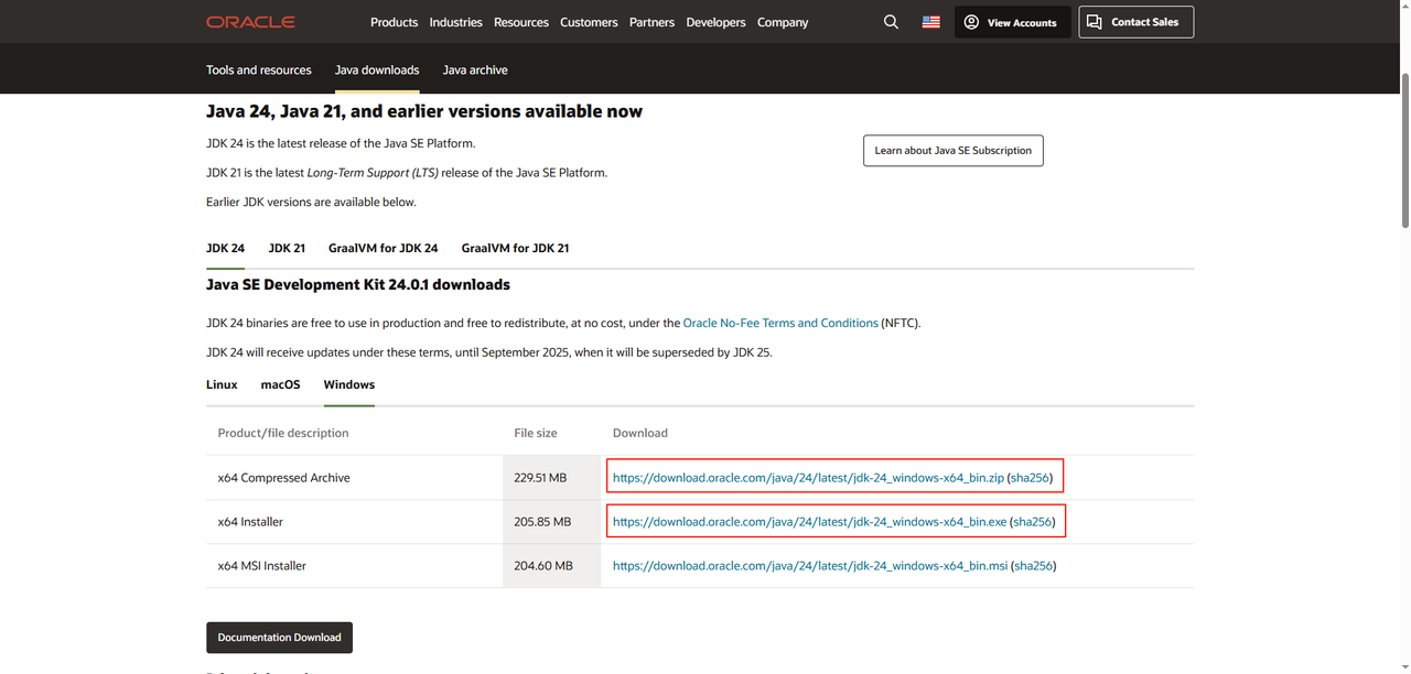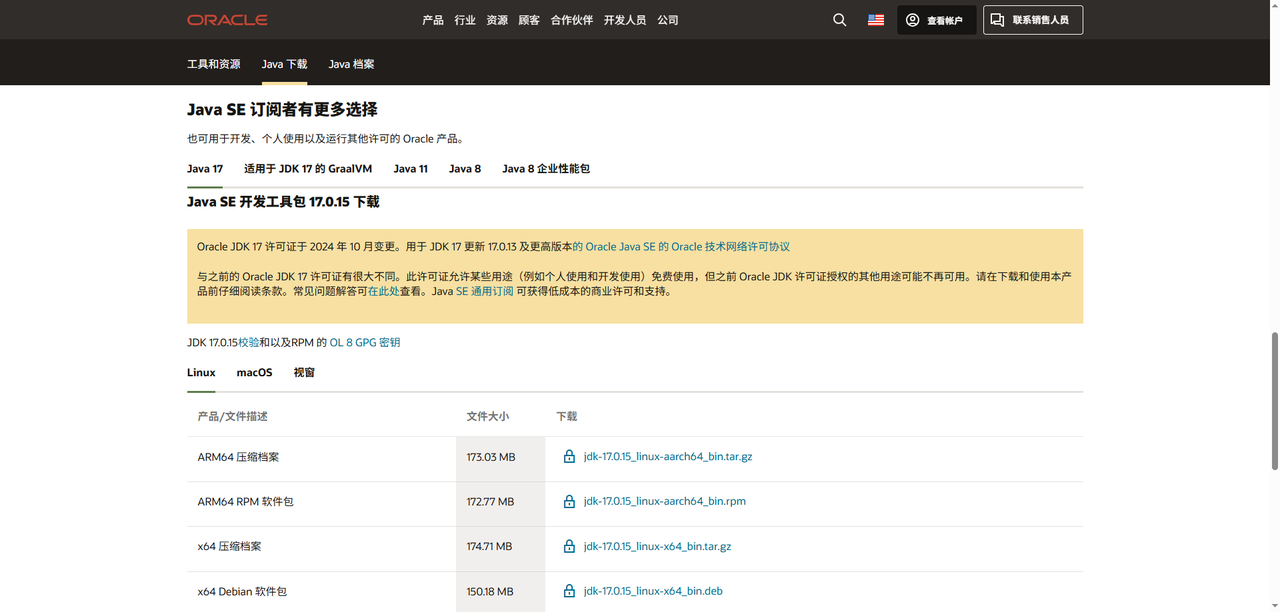 去 Oracle 官网上下载需要安装的JDK(下载时可能需要登录 Oracle 账号,使用邮箱注册一个账号即可)