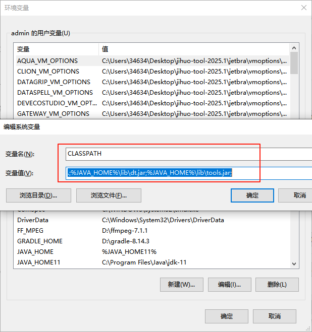 在环境变量中添加一个 “CLASSPATH” 配置项