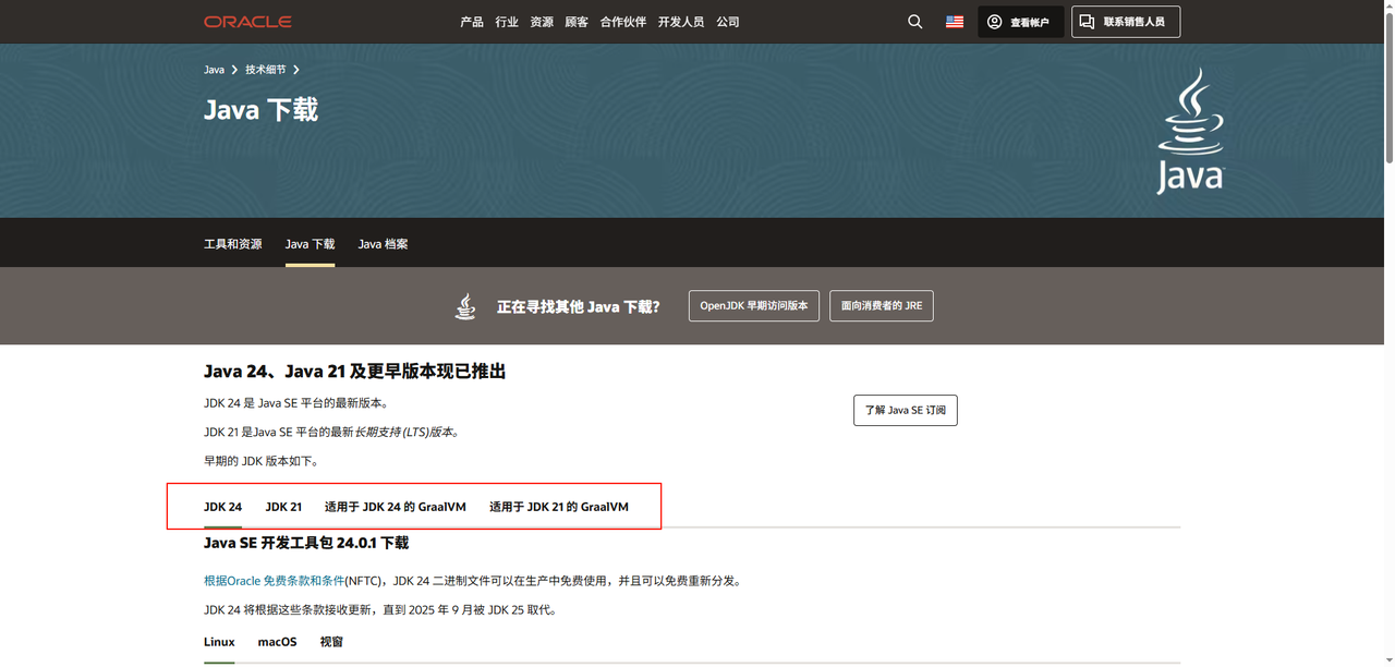 页面上默认展示最新版本的JDK,需要安装低版本(JDK1.8)可以往下滑