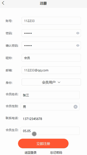 管理员点击“系统用户”这一菜单会显示管理员和会员用户这两个子菜单,管理员可以对这两个角色的信息进行增删改查操作。界面如下图4-8所示。