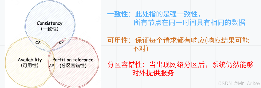 CAP理论指出:分布式系统无法同时满足 数据一致性(Consistency)、服务可用性(Availability)和 分区容错性(Partition Tolerance)这三个基本要求,只能实现其中两项的平衡