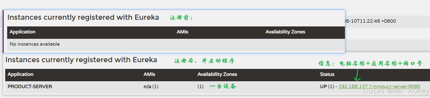 # Eureka相关配置# Eureka 服务server: port: 10010spring: application: name: eureka-servereureka: instance: hostname: localhost client: fetch-registry: false # 表示是否从Eureka Server获取注册信息,默认为true.因为这是一个单点的Eureka Server,不需要同步其他的Eureka Server节点的数据,这里设置为false register-with-eureka: false # 表示是否将自己注册到Eureka Server,默认为true.由于当前应用就是Eureka Server,故而设置为false. service-url: # 设置与Eureka Server的地址,查询服务和注册服务都需要依赖这个地址 defaultZone: http://${eureka.instance.hostname}:${server.port}/eureka/