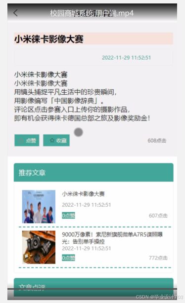 商城资讯,在商城资讯页面可以查看标题、资讯内容、封面等信息,并可对资讯进行点赞、收藏等操作。如图5-4所示。