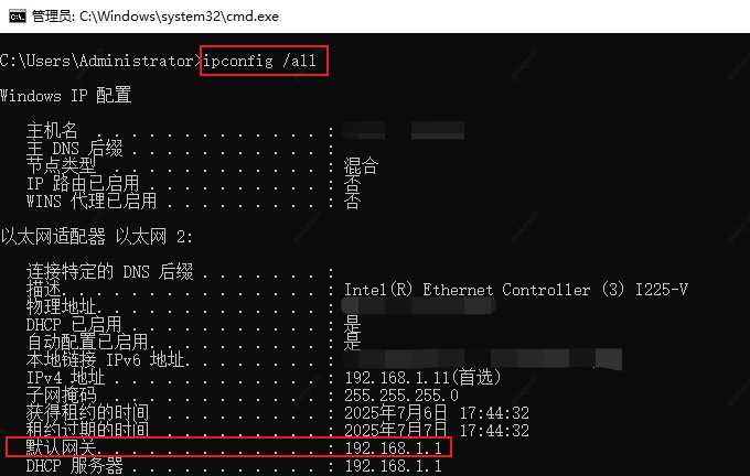 默认网关:可以查看路由器设置,或者在命令提示符中运行“ipconfig /all”命令查看。如果你没有修改路由器网关的话,一般网段是“192.168.20.x”,网关就是“192.168.20.1”;网段是“192.168.1.x”,网关就是“192.168.1.1”。