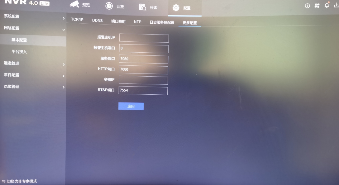 要在广域网访问家庭局域网录像机,那么就需要先连接并配置好网络才行,确认录像机的LAN网口与路由器的网络通道连接正常。再进行网络配置:配置 > 网络配置 > 基本配置 > TCP/IP
