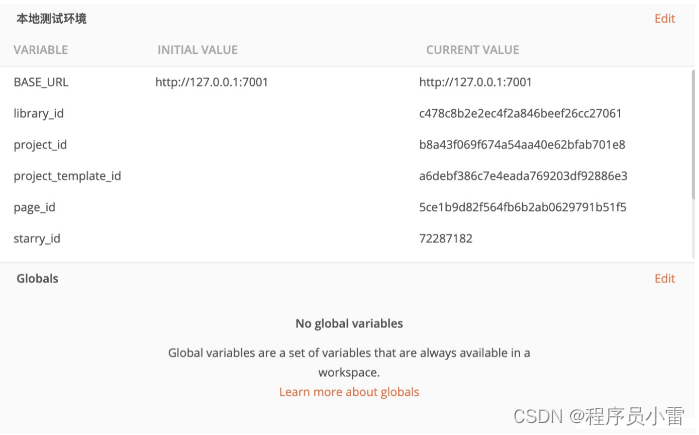 Postman支持设置环境变量(environment variables)和全局变量(global variables)。区别在于,环境变量仅作用于当前环境(environment)下,全局变量作用于整个工作空间(workspace)。笔者自己一般使用环境变量。