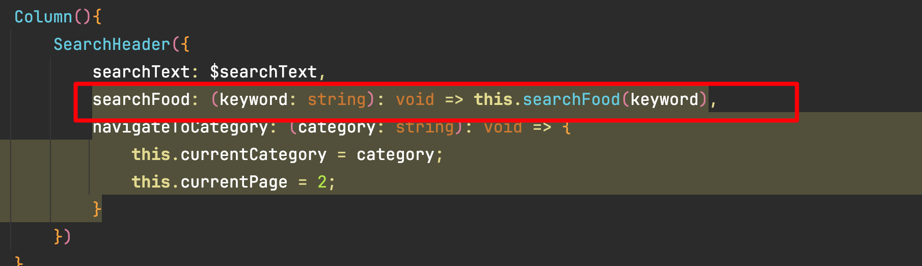 private searchFood: (keyword: string) => void = () => {}; // 正确:初始化为空函数private navigateToCategory: (category: string) => void = () => {}; // 正确:初始化为空函数