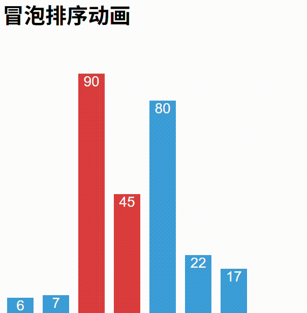 通过重复比较相邻元素,并在顺序错误时交换它们,将最大(或最小)的元素逐步“冒泡”到序列的一端。重复多轮后,整个序列即变得有序。