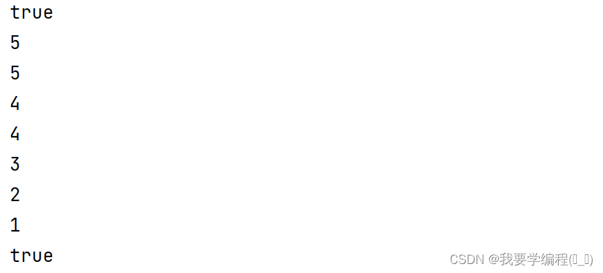 可以通过push(1)=>push(2)=>push(3)=>push(4)=>pop()=>push(5)=>pop()=>pop()=>pop()=>pop()这样的顺序得到[4,5,3,2,1]这个序列,返回true示例2