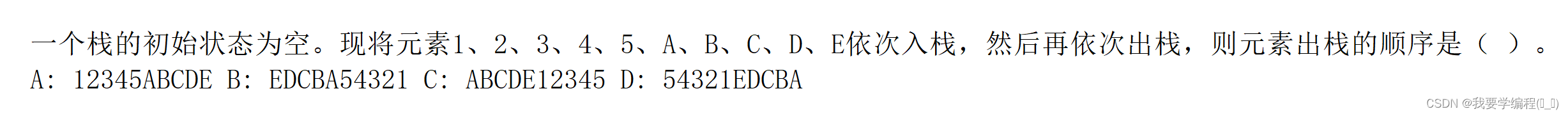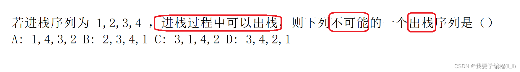 D选项,正确。3 要出来,肯定 1 和 2 进去了。接着 4再进去、出来。最后就是2 出来,1出来。那么结果就是3、4、2、1。