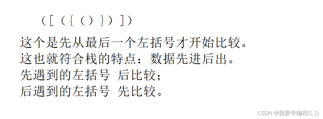当我们去遍历这个字符串时,会发现一个规律:后遇到的左括号 会比 前遇到的左括号 先匹配。