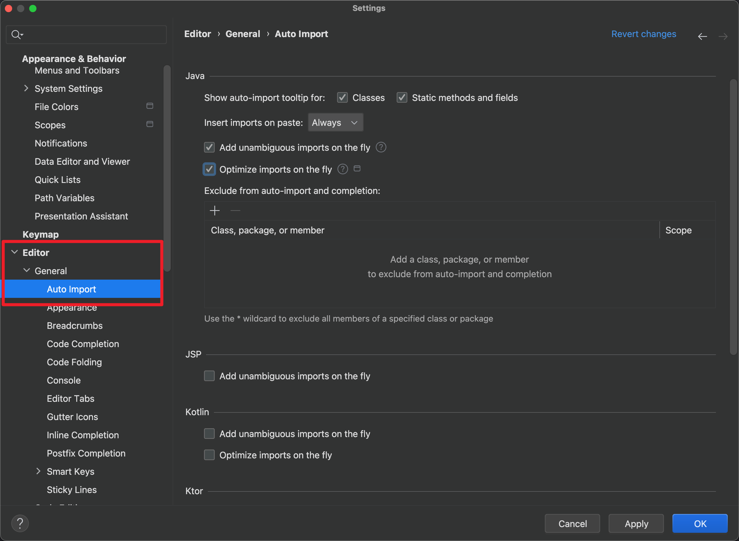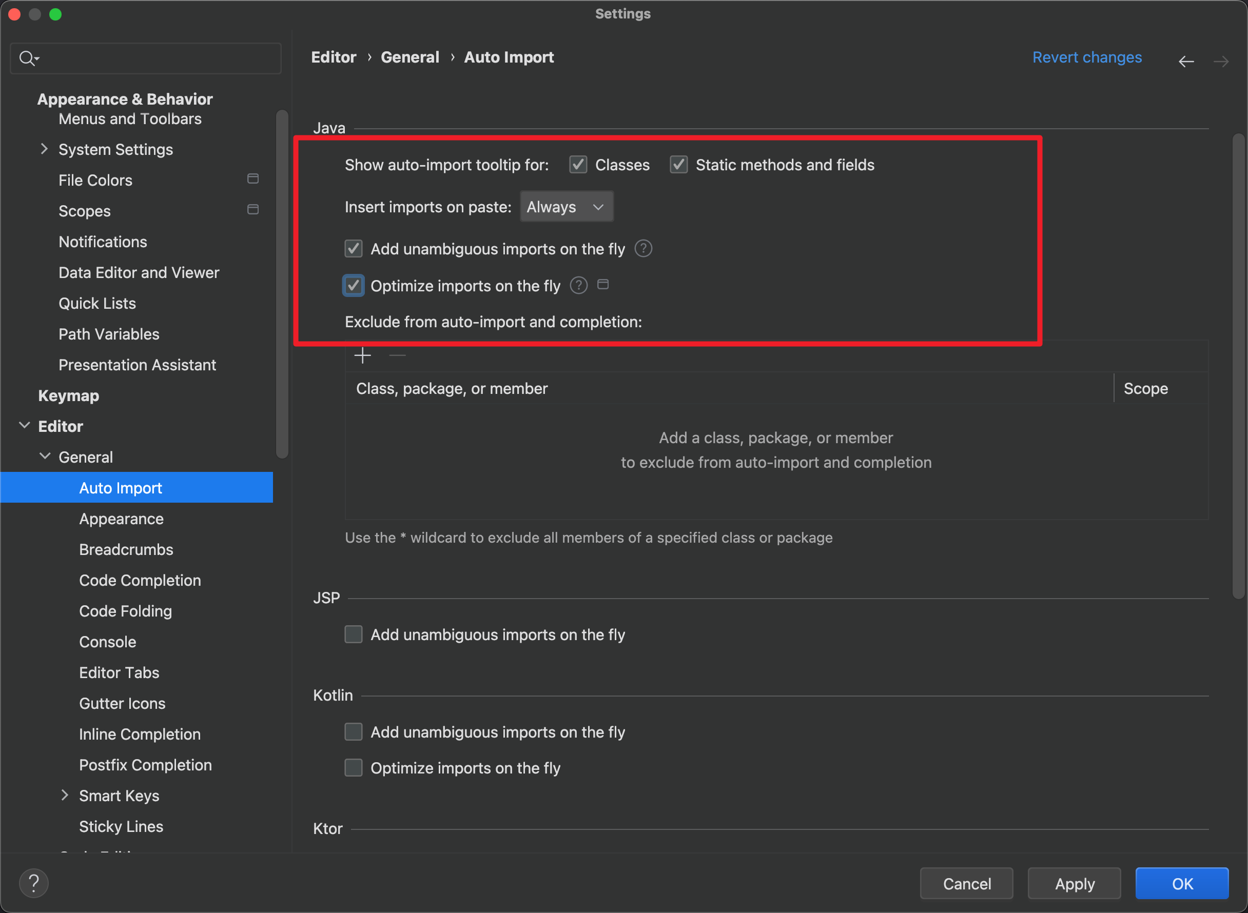 勾选此项,IDEA 会动态优化导入列表(如移除未使用的导入、按代码风格排序)。