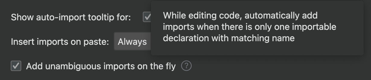 勾选此项,当存在唯一匹配的类或方法时,IDEA 会实时自动添加导入。