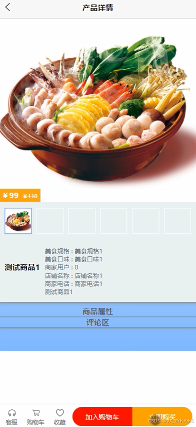 (3)购物管理:用户对喜欢的美食商城可以进行购买,可以选择立即购买或者加入到购物车中进行购买,如下图2-4所示。