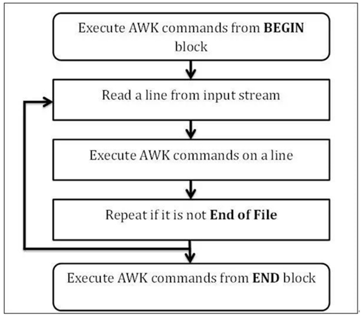 2. 从文件或标准输入(stdin)读取一行,然后执行pattern{ action;… }语句块,它逐行扫描
