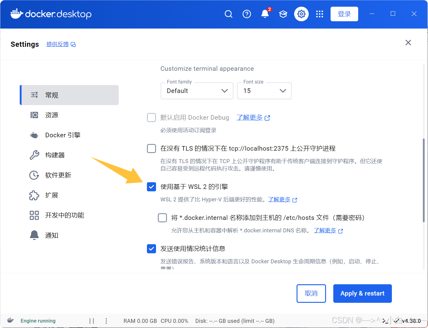 # powershell 管理员运行# 开启docker服务net start com.docker.service# 更新wslwsl --update# 设置 WSL2 为默认版本wsl --set-default-version 2# 启用 Hyper-VEnable-WindowsOptionalFeature -Online -FeatureName Microsoft-Hyper-V-All