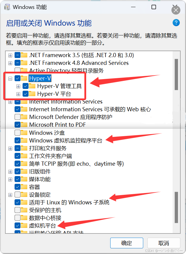 enable_hyper_v.cmd 文件的作用相当于上面图片里的 启动Windows功能的Hyper-V全部勾选