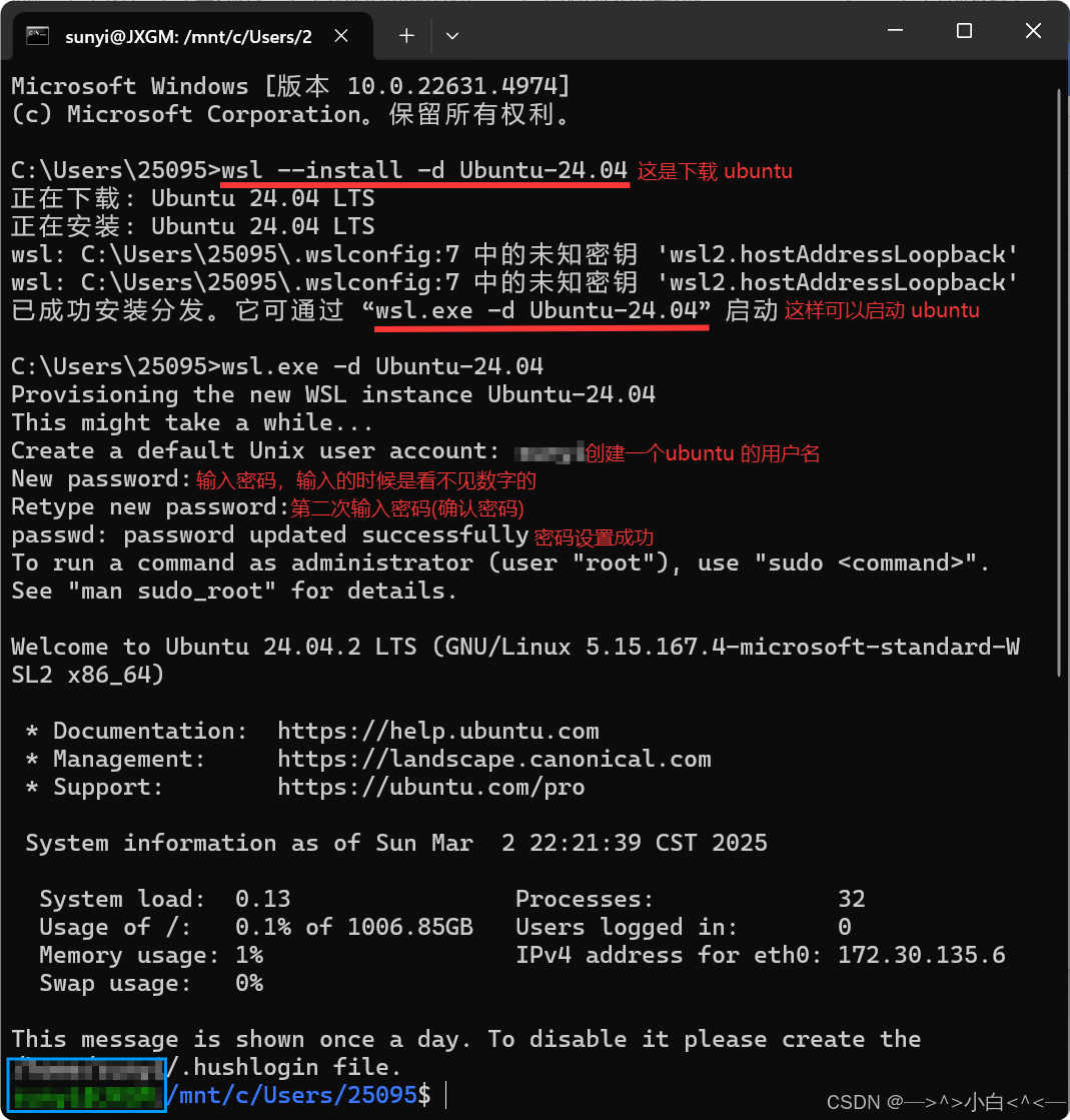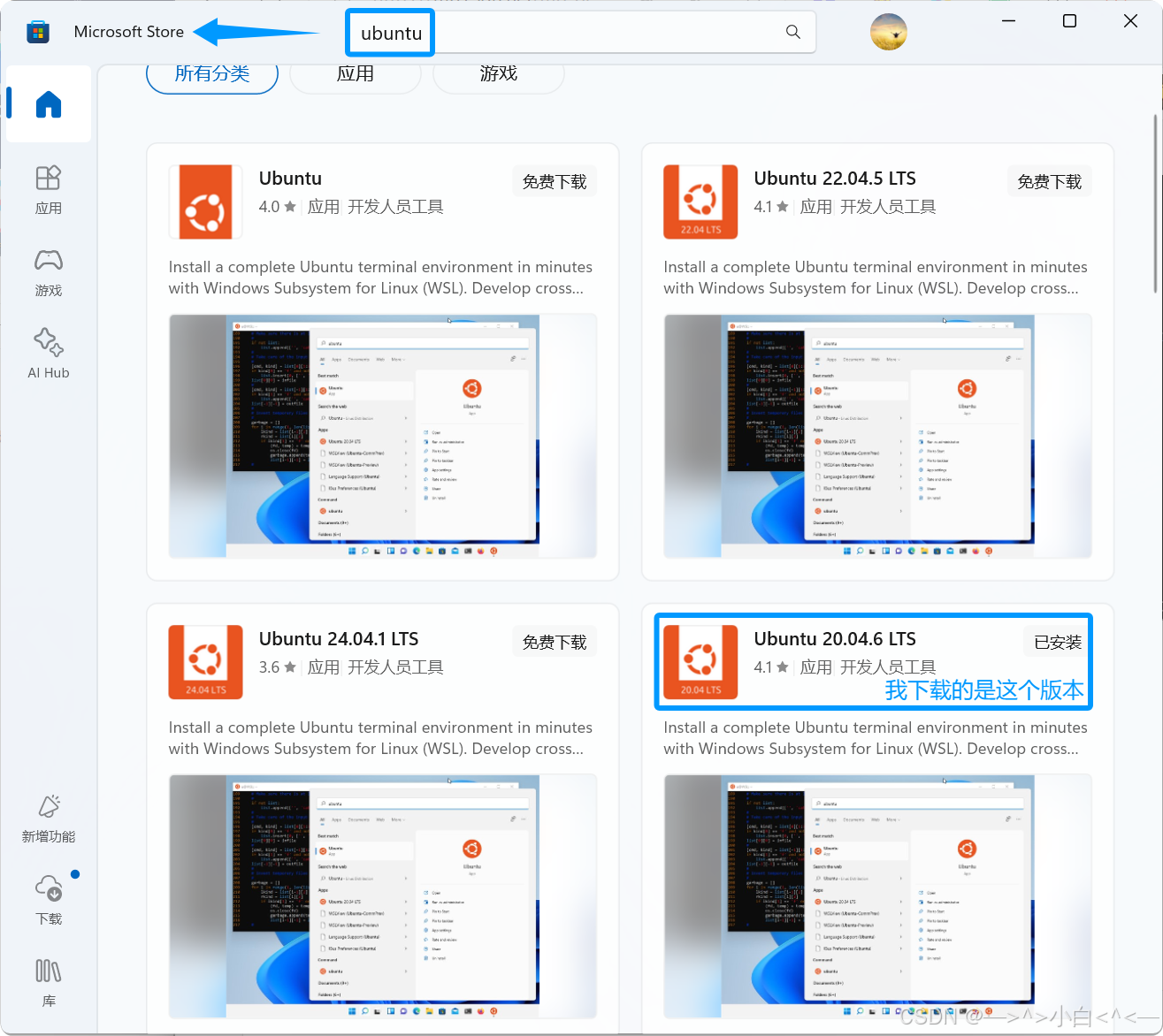 我装了Ubuntu-24.04版本,所以设置里是Ubuntu-24.04,你们装了什么版本的子系统 {打开cmd输入 wsl -l -v 就可以看到}