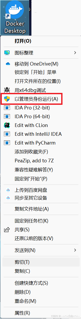 右键点击 Docker Desktop 快捷方式 → 选择 以管理员身份运行。